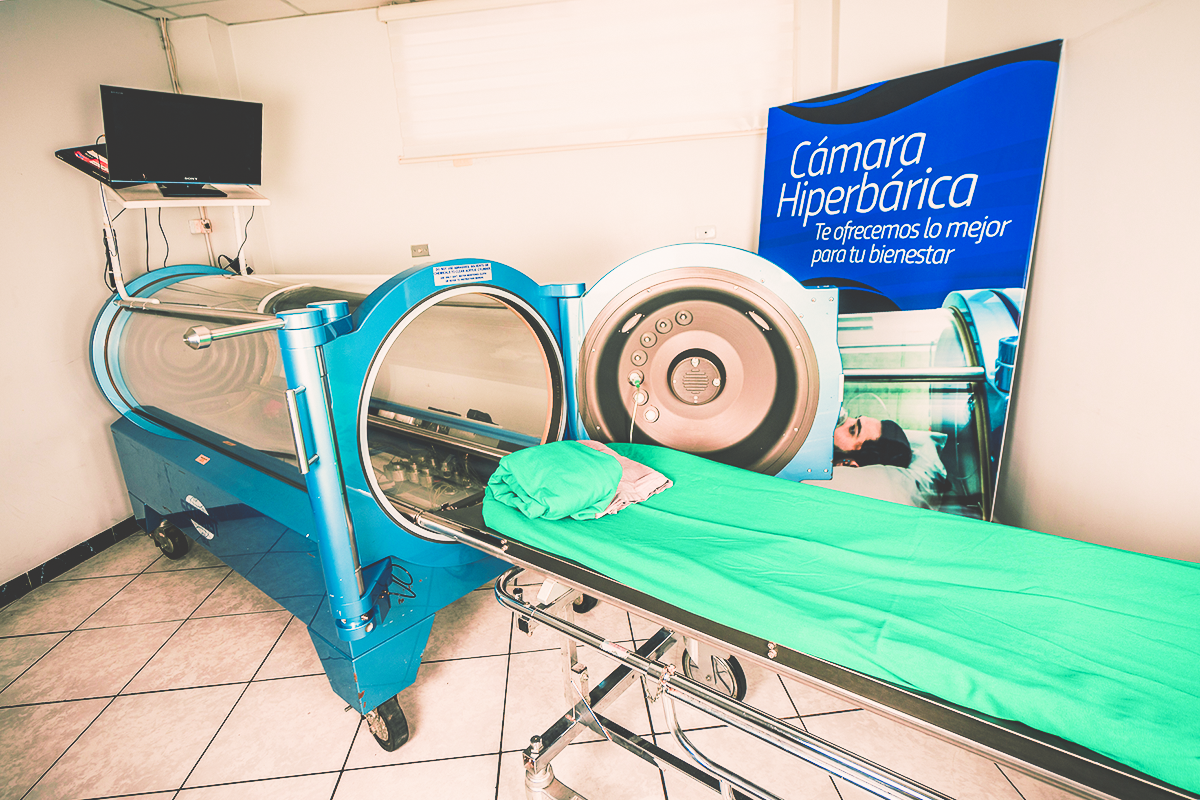 La Medicina Hiperbárica no es medicina alternativa; es medicina producto de investigación científica formal. Consiste en someter al cuerpo a una presión superior a la atmósférifa (por encima de 1.5 atmósferas absolutas o ATA) mientras el paciente respira oxigeno al 100%.